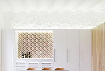 Han destacado los elementos originales como los mosaicos de la pared , creando hornacinas que destacan su belleza y las vigas del techo.