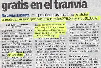 El diario 20 Minutos publica hoy en su edición de Sevilla que, según la empresa, cada día 1.200 usuarios del tranvía viajan by the face, lo que supone unas pérdidas entre los 270.000 y los 540.000 euros anuales.