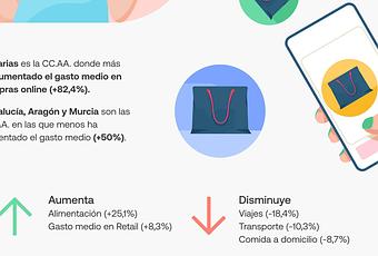 Por Comunidades, desde el inicio de la pandemia Canarias es la comunidad donde el gasto medio en compras online más ha aumentado, un 82,4%, especialmente en artículos de alimentación, retail y ocio. A continuación, se sitúan Cantabria (70,8%) y Extremadura (69,2%). En el otro lado de la balanza se encuentran Andalucía, Aragón y Murcia, que, a pesar de duplicar su gasto medio en compras online, son las comunidades donde ese gasto medio ha crecido menos. Un verano diferente con más gasto en compras online