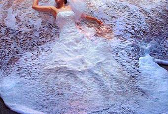 En medio de los peces que habitan en las profundidades marinas, la novia casi pierde su vida a escasos metros del novio, atrapada por su propio vestido.