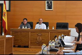 El alcalde, el 'popular' Simón Valentín Bueno, en el centro de la mesa, presidiendo el Pleno del Ayuntamiento.