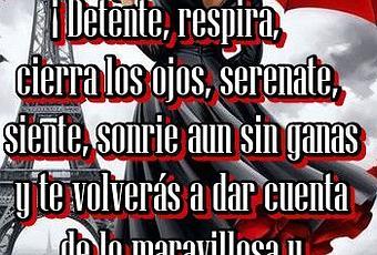 ¡Detente, respira, cierra los ojos, serenate, siente, sonrie aun sin ganas y te volverás a dar cuenta de lo maravillosa y extraordinaria que es la vida!