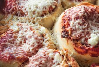 Da para 7 rolls grandes o 12 medianos Para finalizar les aconsejo que, una vez horneados, les agreguen una capa de salsa de tomate, algo más de queso rallado y lo gratinen por unos minutos hasta que el queso se dore y se derrita formando esas hebras largas y elásticas que a todos los amantes de la pizza nos vuelve locos.