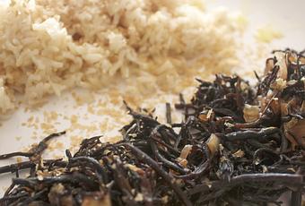 En este momento añadiremos el alga remojada, mezclaremos y añadiremos el chorrito de vino.