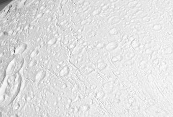 Otra genial imagen proporcionada por la la cámara de ángulo estrecho con filtros sensibles a las ondas de infrarrojo cercano bordo de la sonda Cassini realizado el pasado 21 de diciembre de 2010. La imagen nos muestra las latitudes norteñas de la helada luna Encélado con su superficie plagada de cráteres y grietas, y con los anillos de Saturno como fondo. Foto: CICLOPS. Clic para ampliar.