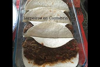 En una sartén preparamos el mole según las indicaciones del fabricante y con el nadamos nuestras enchiladas, añadimos el queso ( usar uno que funda bien, tipo mozzarela por ejemplo) y al horno precalentado unos minutos a 175ºC por arriba y por abajo y luego al máximo para gratinar.Ya podemos disfrutar de nuestras enchiladas, hoy las preparamos de carne pero otros días disfrutamos de las de pollo, si tenéis unos frijoles refritos los podéis añadir al relleno. Esta receta es para 5 pax ó 4 pax. Que coman mucho mucho, como es muy contundente y picante os recomiendo acompañarla de un tomare cortado en daditos, para beber una buena cerveza y para ayudar a digerirlos un buen tequila reposado.
