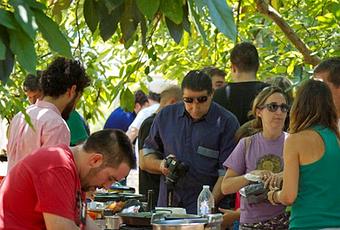 Con la enorme amabilidad y compromiso con el que Pepe Femenía y Esther Casas de “La Cesta”, este pasado lunes se runieron en plena huerta de Sagra un buen número de cocineros, opinadores, aficionados, productores, agricultores y amantes de la gastronomía alrededor de plantas tomateras, de aguacates, de frutales, de hortalizas y de verduras con las que cocinaron y compartieron agradables momentos con solo la sana intención de unir voluntades, de crea sinergias comunes, de dialogar y establecer compromisos con el sano objetivo de sumar, sumar y sumar. Loables objetivos que edición tras edición se van haciendo mucho más fuertes y solidos. Una genial iniciativa que seguro mejora el sector. De nuevo, bravo.