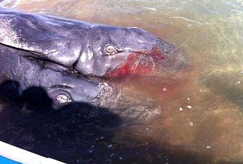 Científicos encontraron el domingo en la Laguna Ojo de Liebre, en México, un ballenato gris bicéfalo. Este podría ser el primer caso documentado de ballenas grises siameses. (Gemelos unidos se han producido en otras especies de ballenas, como la aleta, sei y minke. Una búsqueda en la base de datos del Museo de Historia Natural del Condado de Los Ángeles no revelaron instancias publicadas de gemelos siameses de ballena gris).