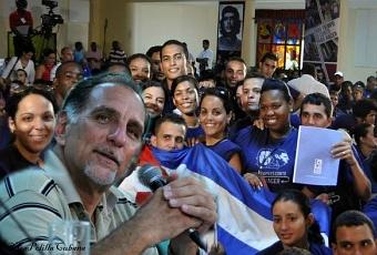 Luego de las preguntas, criterios y aplausos, hubo una cola como cualquiera de las que se hacen en Cuba. Esta vez sólo se quería saludar, estrechar la mano, plasmar un beso o posar en una foto, porque tener a un héroe delante es un acontecimiento único.