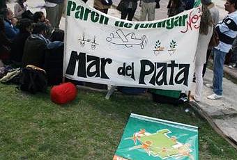 Por su parte, Victoria, integrante de la organización Mar del Plata contra el Saqueo, agregó: “no debemos quedarnos sólo con lograr cambios en las ordenanzas, porque de esa forma no vamos a lograr que paren de fumigar, tenemos que tirar todos para el mismo lado y unificar las luchas, debemos tener en cuenta que no es solamente una cuestión ambiental sino que es el saqueo de nuestros recursos”.