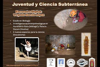 Virginia García López, natural de Sevilla. Grado en Biología por la Universidad de Sevilla, Asistente Honorario del Laboratorio de Entomología Aplicada en el Departamento de Zoología. Actualmente realiza un Máster de Biología Avanzada especizado en la Gestión Integral de los Recursos Naturales. Estudios bioespeleológicos en el Complejo Hundidero-Gato (Málaga) y realiza un Trabajo Final de Máster sobre la caracterización de la cueva de Palacio Oscuro (Huelva).