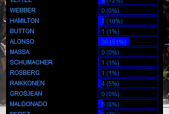 Desde hace casi 2 meses, el campeonato de encuestas de F1 by Riki fue sentenciado a favor de Fernando Alonso, sin embargo la emocion aumenta con el fin del mundial 2012 y la pronta coronacion del nuevo tricampeon del mundo, para el GP de Estados Unidos, la aficion española ha apoyado al de Asturias una vez mas, de este modo consigue otra victoria en las encuestas sobre Sebastian Vettel y ambos McLaren, ¿podra concretarse esto con la realidad?, ¿podra Fernando hacer otro milagro?Para ver la situacion de las encuestas entra en mi seccion de encuestas en la columna lateral.