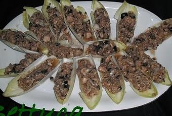 Salamos un poco las hojas de endivia y rellenamos con la mezcla.