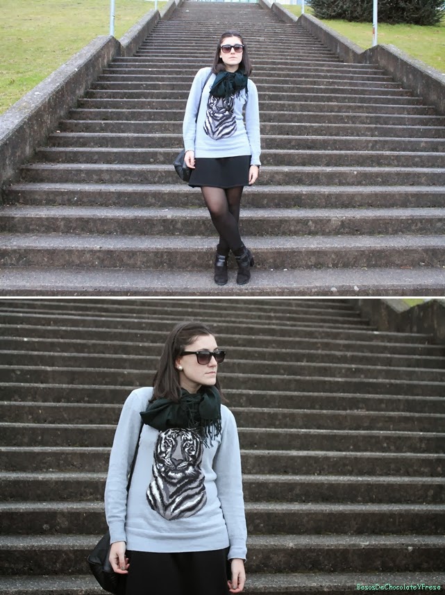 Outfit 4: New boots. Nuevos botines de la nueva temporada de Stradivarius combinados con vestido y sweater gris. (aquí)