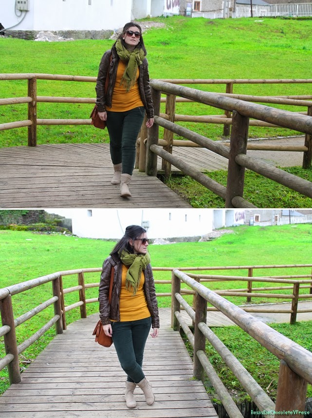 Outfit 11: Mustard & Green. Combinación de colores mostaza y verde para look casual. (aquí)