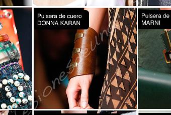 En cuanto a los collares, se da una mayor proporción de las gargantillas sobre los colgantes que, a pesar de haberlos visto entre las propuestas de Dolce & Gabbana, Chloé o Dries Van Noten, lo cierto es que los collares pegados al cuello les han robado prácticamente todo el protagonismo. Por su parte, los brazaletes se prefieren a las pulseras y en ocasiones se opta por la exageración y se combinan pulseras con brazaletes sobre la muñeca, fue el caso de Prada o Roberto Cavalli.
