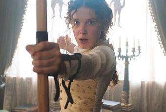 Enola Holmes es la lujosa adaptación de la serie de novelas de Nancy Springer para Netflix, creo que con vocación de convertirse en un fenómeno como lo fuera Harry Potter. Dirigida por el televisivo Harry Bradbeer, que ha firmado episodios de Killing Eve y Fleabag, estamos ante un cruce entre Mujercitas y una aventura de Sherlock Holmes que resulta sorprendentemente efectivo y encantador. Los nostálgicos recordarán El secreto de la pirámide (1985), pero son otros tiempos y estamos ante una película impecable que esconde bien su naturaleza de producto cuidadosamente fabricado para agradar a todos los públicos. La popular estrella de Stranger Things, Millie Bobby Brown, está estupenda como Enola, la hermana pequeña de Sherlock (Henry Cavill) y Mycroft (Sam Claflin) que se embarca en una aventura con misterio por resolver tras la desaparición de su madre, una perfecta Helena Bonham Carter. Esta funciona como mentora de la heroína, a la que ha entrenado como si fuera un superhéroe -o un héroe de la mitología griega- y a la que sobre todo ha dado una educación feminista que será uno de los temas más importantes y agradecidos del argumento. Millie Bobby Brown sostiene sin problemas un relato de época, la Londres de finales del siglo XIX lujosamente recreada en escenarios y vestuario, pero de desarrollo moderno -en una línea similar a la de Guy Ritchie en sus películas sobre Holmes- con constantes rupturas narrativas para incluir flashbacks, imágenes gráficas o rupturas de la cuarta pared que remiten, claro, a Fleabag. Todos estos elementos funcionan francamente bien aunque el metraje me parece recargado por los dos casos que aparecen en la historia, el ya mencionado relacionado con la madre de Enola y el de un joven Lord desaparecido (Louis Partridge), obligatorio peaje romántico, que alarga el film a más de dos horas. Aún así, Enola Holmes me parece perfecta para su público objetivo.