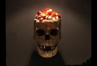 Una de sus otras esculturas, está hecha con el mismo procedimiento, pero el material que trata, en este caso, son pequeños trozos de ceras de colores, que al deshacerse foman, en este caso, una pieza mucho más abstracta, compuesta a partir de diferentes manchas de colores que se deshacen y se mezclan, pero en este caso, con volumen y en tres dimensiones.