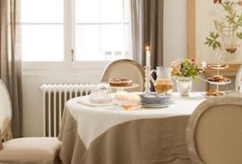 Si queremos ganar espacio en ventanas mejor la cortina enrollable,pero si lo que buscamos es más glamour y elegancia,cortinas tradicionales y apoyadas en el suelo.En este comedor la interiorista Rocio Montesino,opto por su combinación de cortina enrollable y cortina tradicional el resultado es un comedor más vestido.La cortina de trama abierta de referencia NUT HUMO de la firma Margotcoleccion siendo una tela vaporosa siendo transparente dejando pasar más luz.