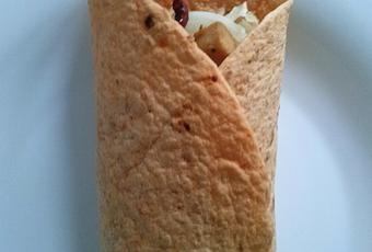 Coloca las verduras en el centro, después la carne, cúbrelo todo con salsa y enrolla la tortillita comenzando por la parte inferior (para que no se caiga la salsa).