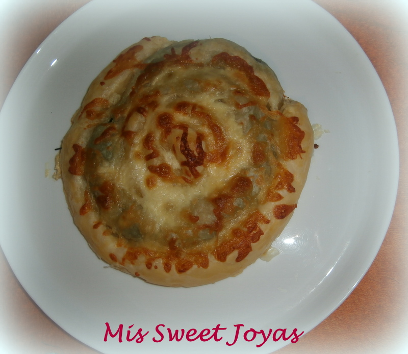 Ya esta todo enrollado, ahora decoramos, yo le puse queso parmesano especial pizza o también se puede decorar con huevo…
