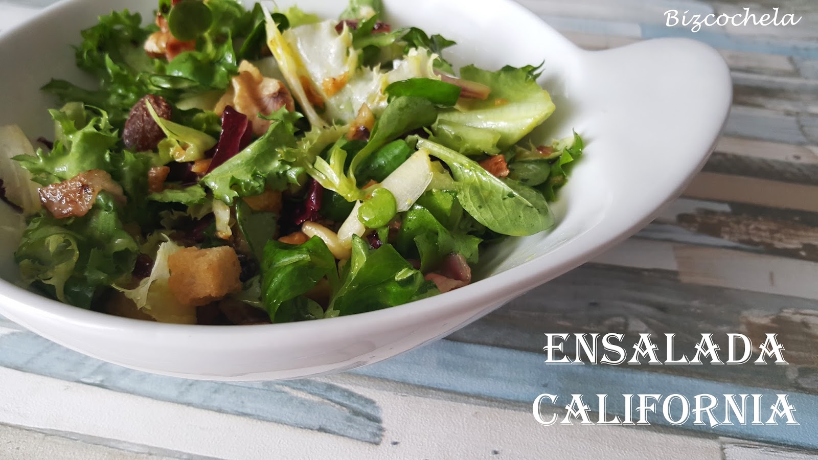 Mezcla de lechugas (yo he comprado tipo gourmet)Una loncha de baconuna cucharada sopera de picatostes o pan tostadouna cucharada de cebolla fritauna cucharada de mezcla de pasas, nueces y otros frutos secos, al gusto3 cucharadas soperas de aceite de olivauna cucharadita de vinagre de JerezUna cucharada de mostazaUna o dos cucharadas de miel (al gusto)