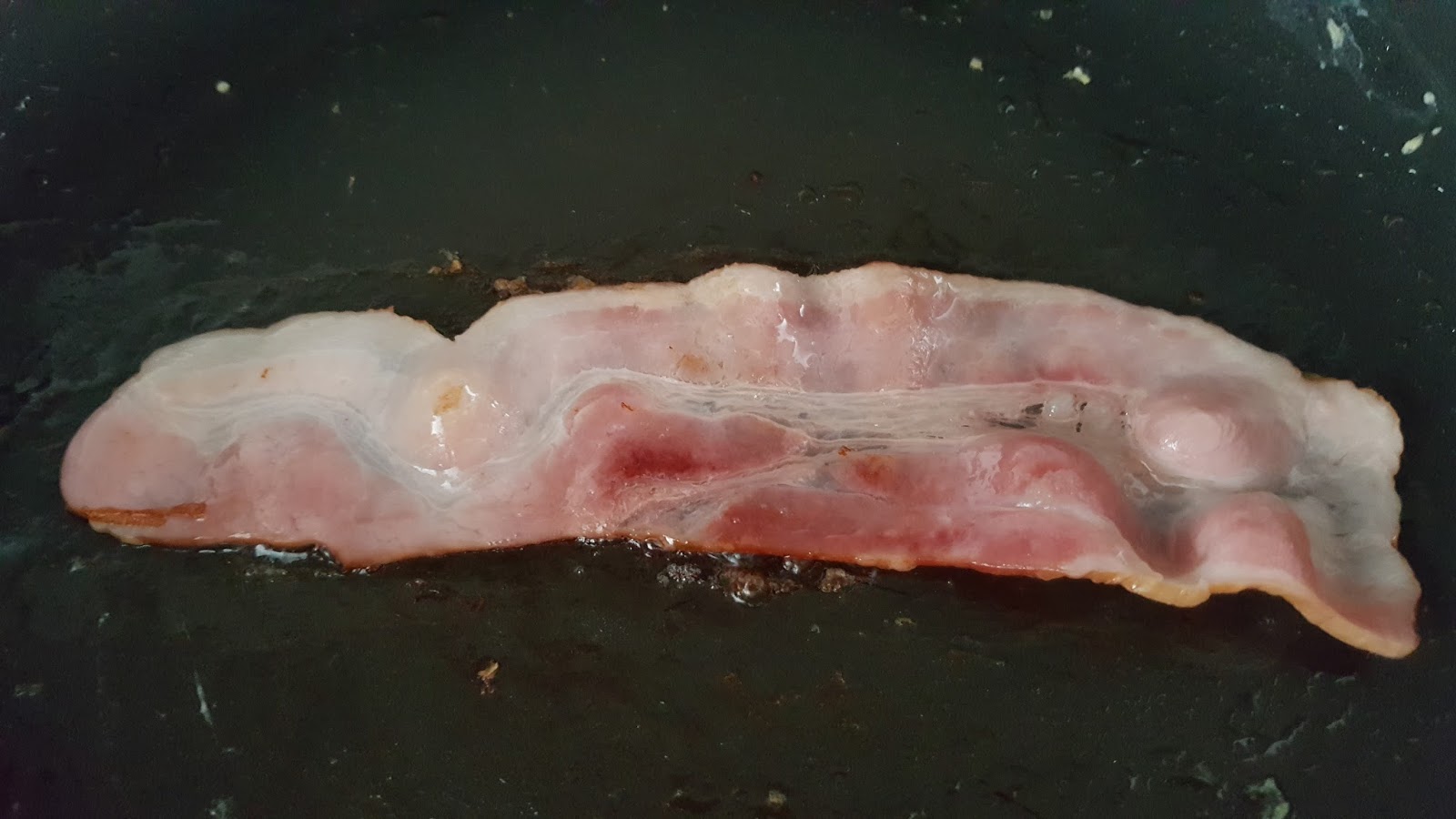1. - Ponemos la loncha de bacon en una sartén a fuego medio para que se haga poco a poco y quede crujiente.