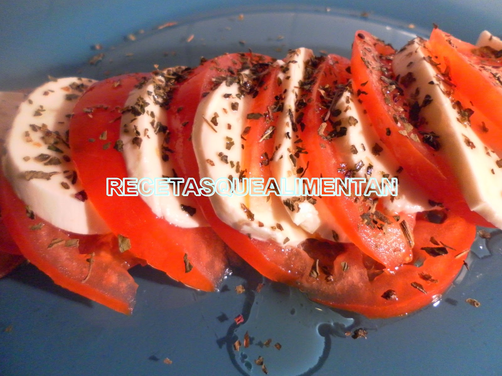 INGREDIENTES200 gr. queso Mozarella, 500 gr. tomates, 50 ml. aceite de oliva, albahaca, orégano, pimienta negra y sal.