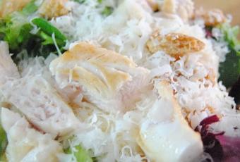 Añadimos la salsa que hemos preparado anteriormente y ponemos los picatostes, el pollo y el queso rallado por encima. Aderezamos con aceite de oliva y sal al gusto de cada uno y tenemos nuestra ensalada cesar rápida lista para servir.