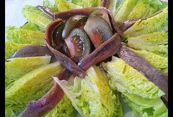 Una ensalada fácil , sencilla y muy sabrosaIngredientes:1 cogollo1 tomate kumakisal y pimienta ½ lata de anchoas en aceite de oliva ½ vaso de chupito de zumo de maraguya
