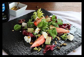 4-Al servir aliñar la ensalada y espolvorear con los frutos secos.
