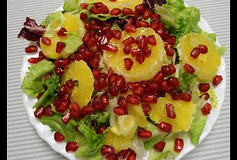 Lavar y picar la ensalada, pelaremos las naranjas y se cortan en rodajas (si os gusta mas la podeis poner en gajos)