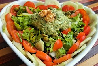 Ensalada con salsa cremosa de espinacas y alcachofas