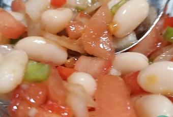 Ensalada de Alubias blancas 🫘, frescura, color y sabor en cada bocado.Ideal para esos días de calor.Y si lo complementas con un huevo cocido🥚o atún en conserva al natural, te quedará un plato top.
