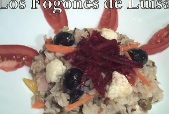 Cocemos el arroz ( puede ser pasta, legumbre, distintos tipos de lechuga, lo podemos preparar con lo que mas nos guste), cuando este listo dejamos que se temple un poco y añadimos los ingredientes que mas nos gusten, en nuestro caso pusimos unas aceitunas negras sin hueso, unos brotes de soja, atún al natural unos pepinillos y unos encurtidos que llevaban coliflor, pimientos y zanahoria cuando ya esta todo se le echa un poco de aceite de oliva, sal y un poco de vinagre, mi hermana echo un poco del liquido de los encurtidos, remover todo, emplatamos y adornamos con un poco de remolacha y unas rodajas de tomate y listo........... buenísima