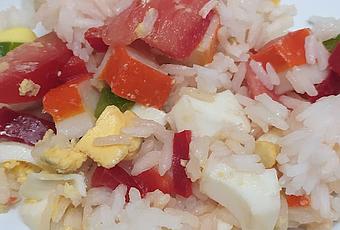 - Cocemos el arroz en una olla con agua hirviendo y sal durante 10 minutos. Lo escurrimos y refrescamos con agua fría.