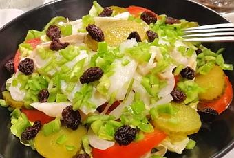 ENSALADA DE BACALAO CON VINAGRETA DE UVAS PASAS