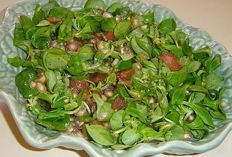 Ponemos los canónigos en una ensaladera. Añadimos la vinagreta preparada y mezclamos bien la ensalada.Servir enseguida.