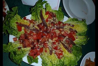 Ingredientes:2 cogollos de lechuga1 tomate picado1 lata de anchoas en aceite de oliva virgenqueso de oveja en taquitos pequeños.1 cucharada de vinagre.