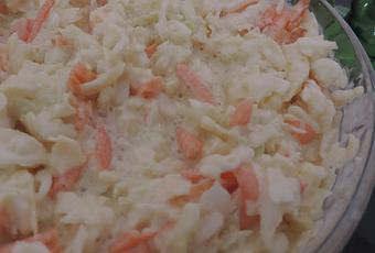 Rallar la manzana y la zanahoria. Mezclar bien todos los ingredientes.Agregar la salsa que habremos preparado con todos los ingredientes emulsionados.