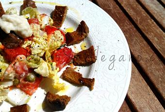 El otro día me apetecía una ensalada. Quería algo sabroso, ligero y nutritivo. Como soy alérgica a nueces, piñones y algún que otro fruto seco, no puedo aportar casi nunca esa parte a mis platos, pero ya sabéis que no me canso de intentar encontrar el modo de conseguir platos completos y ricos…