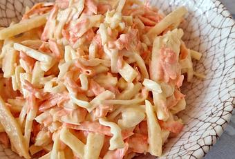 La ensalada de col o coleslaw es una guarnición muy típica de la carne en los restaurantes americanos. Realmente su origen es incierto, se atribuye a Holanda e Inglaterra aunque todos la conocemos por la guarnición del típico americano de las costillas barbacoa. Una de las mejores recetas de ensaladas que conozco.
