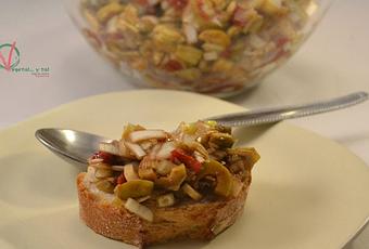 Esta ensalada debería haber estado en mi blog mucho antes. La conocí a través de mi cuñada Reyes, aunque ella incluye caviar. Pero cuando ella o mis hermanas la elaboran y vamos a comer juntos, dejan el caviar a parte y cada uno se sirve a su antojo, si así le gusta.En Murcia, igual que en otras partes de España, hay una larga tradición de elaborar y consumir encurtidos de todo tipo. No deja de ser una vinagreta, pero con más variedad y algunos ingredientes no tan habituales. El aliño es tan sencillo como un buen AOVE (aceite de oliva virgen extra) y crema de vinagre balsámico. Es mejor usar el vinagre balsámico en su versión espesa, para que se agarre más a los encurtidos picados. Pero si no tenemos a mano, igual se puede usar en su versión líquida normal, aunque nos hará charquitos en el plato.