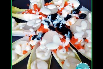 - Quitarles el tallo a las endibias (para que no amarguen), lavarlas y ponerlas en un plato.