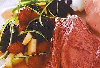 Lava la manzana, extráele el centro y corta el resto en daditos. Lava y escurre las fresas y las moras, y pónlas en un recipiente con el azúcar, el vodka y el jugo de 2 limones; mezcla todo y deja reposar en el refrigerador por 1 hora.Cuela la mezcla de frutas, pasa el jugo a una cazuelita, dale un hervor, agrega la lámina de gelatina exprimida, deja que se disuelva y baja el fuego, dejando que se entibie el sirope. Viértelo sobre las frutas y ponlo en el refrigerador hasta la hora de servir.