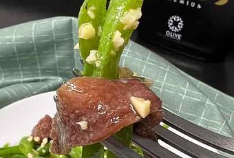 Prepara la vinagreta con 3 cucharadas de aceite de oliva virgen extra, que si es de un picual temprano vas a alucinar con el aroma tan fresco que tiene.