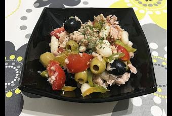 Las legumbres nos encantan, y a pesar de que solemos prepararlas en forma de guiso, a veces, sobretodo en verano, apetecen de una forma más ligera y fresca, por eso somos adictos a comerlas en ensaladas. ¿Qué te parece nuestra propuesta para hoy?Ingredientes para 2 personas:- 100 gr de judías blancas- 2 latas de atún al natural- 15 tomates cherry- 1/2 pepino- 1/3 de pimiento verde italiano- Aceitunas negras- Aceitunas verdes- Perejil picado- Sal- Aceite de olivaReceta:- Deja en remojo las judías blancas la noche anterior.- Al día siguiente, cuécelas en agua hirviendo con un poco de sal hasta que estén blandas.- Lava el pepino, los tomates y el pimiento verde.- Corta el pimiento en tiras pequeñas, el pepino en cuadraditos y los tomates cherry en 4 gajos.- En una sartén con aceite de oliva, rehoga a fuego medio el pimiento verde hasta que se dore y se ablande.- Colócalo sobre papel absorbente para retirar el exceso de aceite y reserva.- Escurre el atún.- Mezcla en un bol las judías blancas, el pimiento verde, el pepino, los tomates cherry, el atún y las aceitunas verdes y negras.- Espolvorea un poco de perejil picado y de sal por encima.- Vierte un chorrito de aceite de oliva por encima y remueve de nuevo.