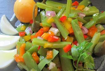 - Judías verdes cocidas al dente 250 g.- Huevos cocidos 2.