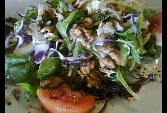 Esta ensalada es muy consistente aunque parezca que es solo lechuga, 1 tomate y algunas nueces ya que las nueces aportan bastantes calorías pero como el aceite de oliva sus grasas omega 3 son buenas para el corazón además tienen fósforo, vitaminas del grupo B y lecitina entre otros que ayudan a la memoria.También dicen que ayudan a no tener depresión.
