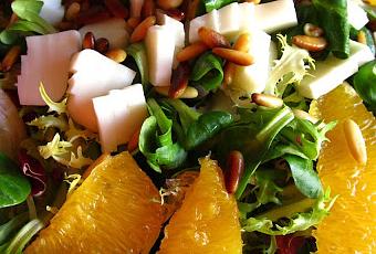 INGREDIENTES:- Mezcla de lechugas varidas.- Una naranja de Top Naranjas.- Un puñadito de piñones.- 50 gr. de queso de oveja tierno QUESO DE OVEJA- Aceite de oliva.- Reducción de Pedro Ximenez, aquí podéis leer como se hace
